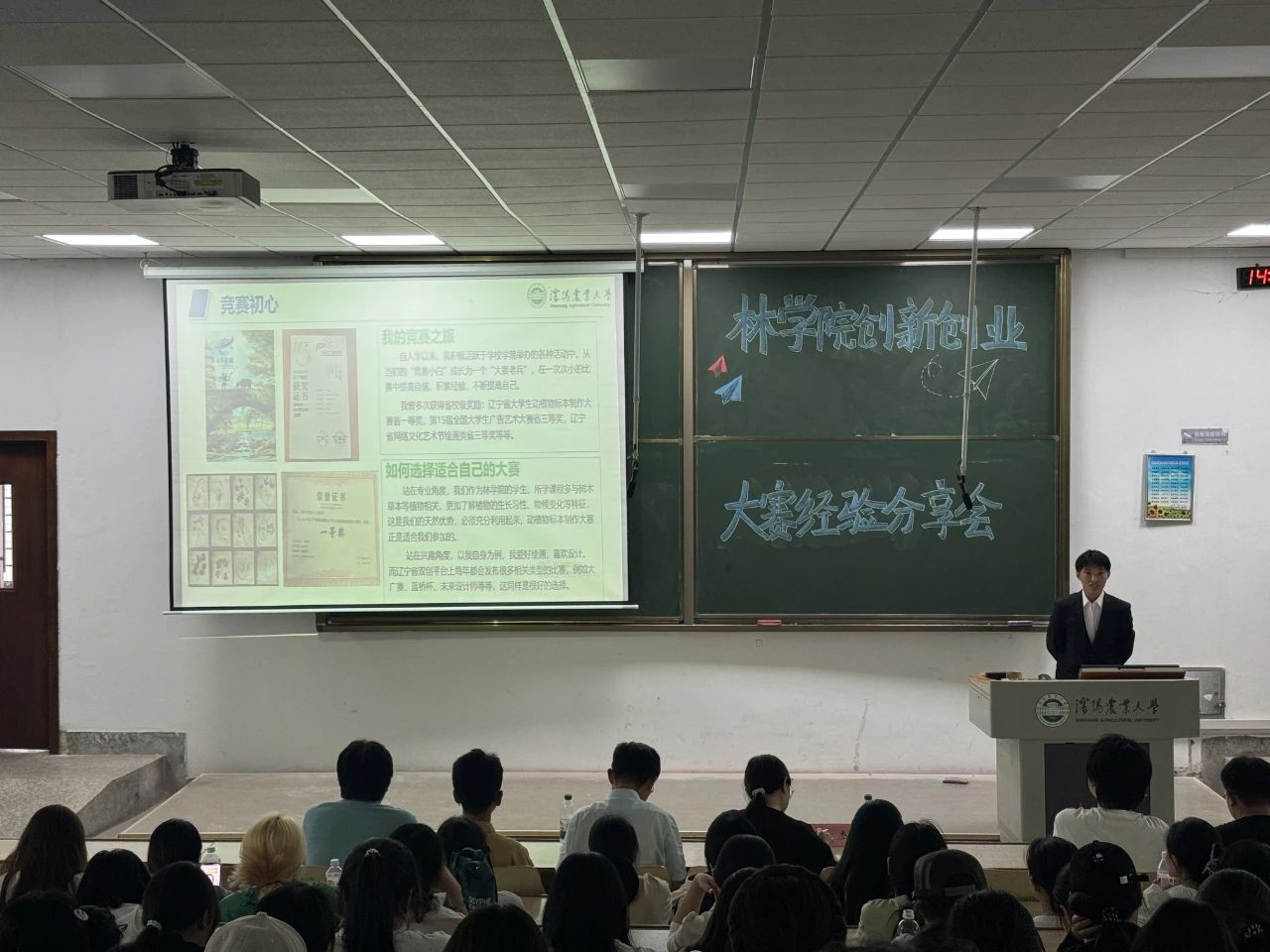 李红柏同学分享了参加大学生广告大赛和辽宁省动植物标本大赛的经验。他强调,在广告大赛中要注重创意的表达和视觉效果的呈现,同时要深入了解目标受众的需求和心理;在动植物标本大赛中,要注重标本的制作工艺和科学价值,展示出自己的专业素养和创新能力。